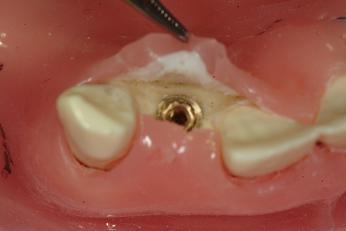 この状態で歯肉形態が安定するまで1~4週間ほど置きます。場合によってはこの時に仮歯を装着する治療を行うこともあります。