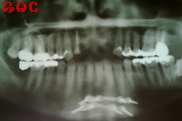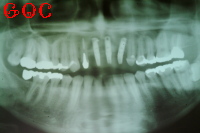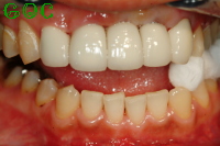 その手術が終わり半年後くらいして落ち着いた段階で、上顎前歯に3本のインプラントを埋め込みました。