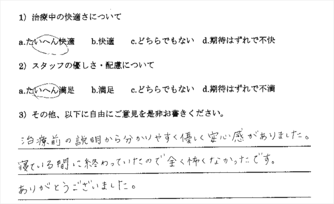 無痛鎮静法を受けられた患者様の声をご紹介いたします。