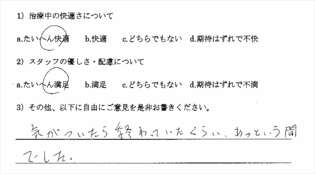 こんなに心地良く歯医者の治療を受けたのははじめてでした。