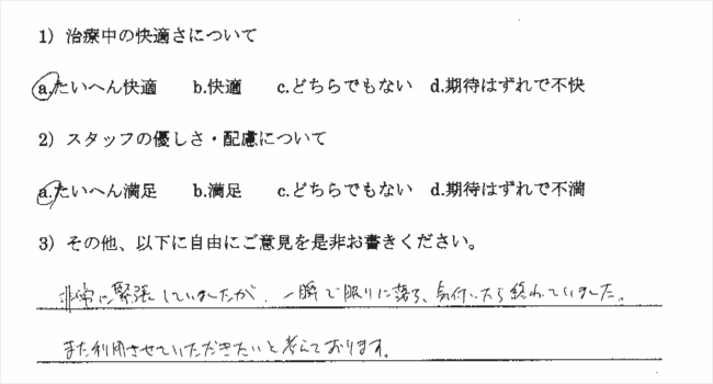 期待以上の治療で満足しました。